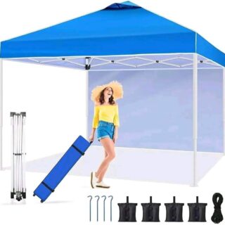 CROWN SHADES 10×10 Pop up Canopy Instant Commercial Canopy Including 1 Removable Sidewall, 4 Ropes, 8 Stakes, 4 Weight Bags, STO ‘N Go Bag, Sky Blue