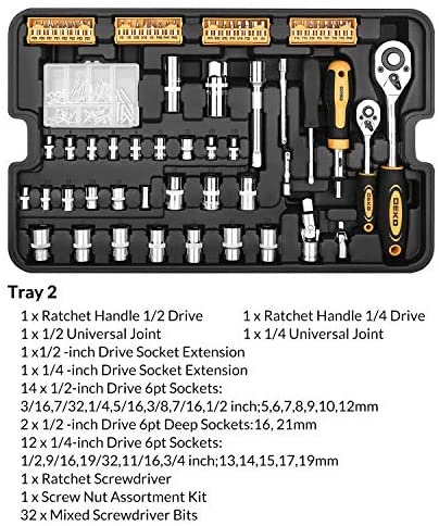 MULTI-DIMENSIONAL PRECISION TOOLS:Made of durable and high-quality premium forged steel, the mechanic tool set providing accurate and perfect repair. Surface chromium plating treatment, anti-corrosion, easy to clean oil stains.Perfect choices for men, good gifts for your father and husband