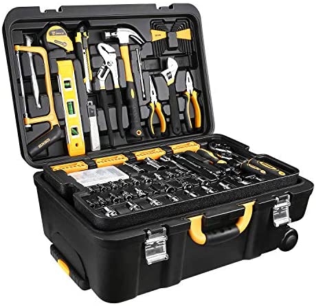 258 Piece Tool Kit with Rolling Tool Box Socket Wrench Hand Tool Set Mechanic Case Trolley Portable