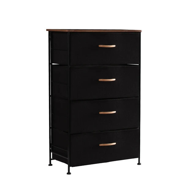 4 Drawer Bedside Table Storage Tower Fabric Dresser Cabinet Organizer Easy Pull Bins with Steel Frame Wood Top Closet