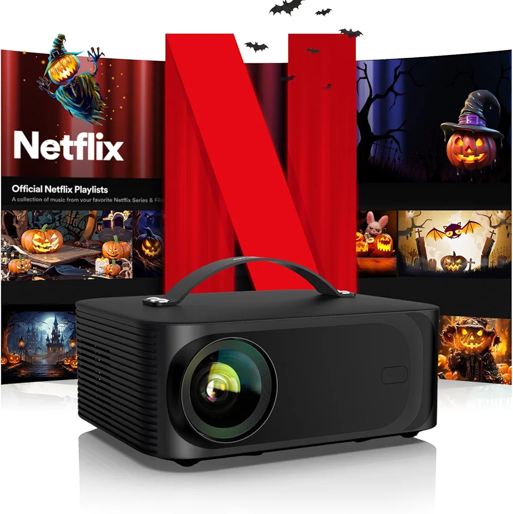 4K Official Netflix & Dolby Audio: 30000LM Remote Focus/6D Keystone Correction WiFi6 Bluetooth Smart Projector Full HD 1080P, ONOAYO Supports 4K Video Projector Home Cinema / Outdoor Mobile Phone