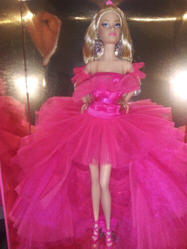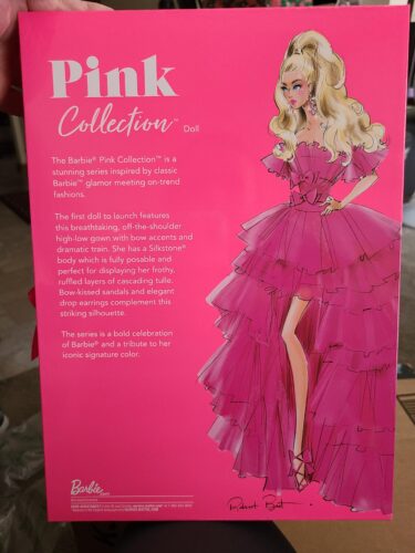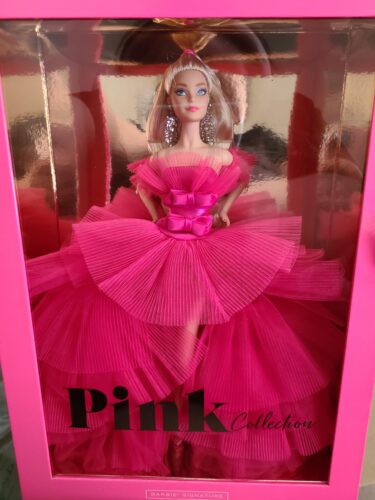 - βIn an on-trend look that’s rich with classic Barbie glamor, this Barbie Pink Collection doll makes the perfect gift for collectors. Includes doll stand and Certificate of Authenticity