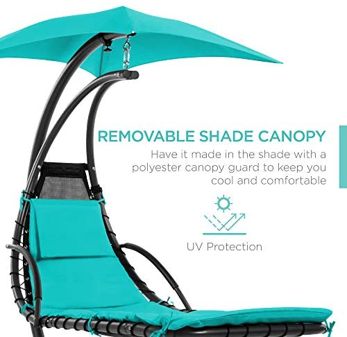 Best Choice Products Outdoor Hanging Curved Steel Chaise Lounge Chair Swing w/Built-in Pillow and Removable Canopy, Teal