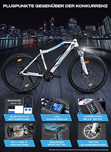 6 reviews for BLUEWHEEL E-Bike 27,5“ & 29“ I Deutsche Qualitätsmarke | EU-konform E-Mountainbike 21 Gänge & Hinterradmotor für 25 km/h | Fahrrad mit MTB Federgabel, App, LED Licht & Sportsattel | BXB75 Ebike
