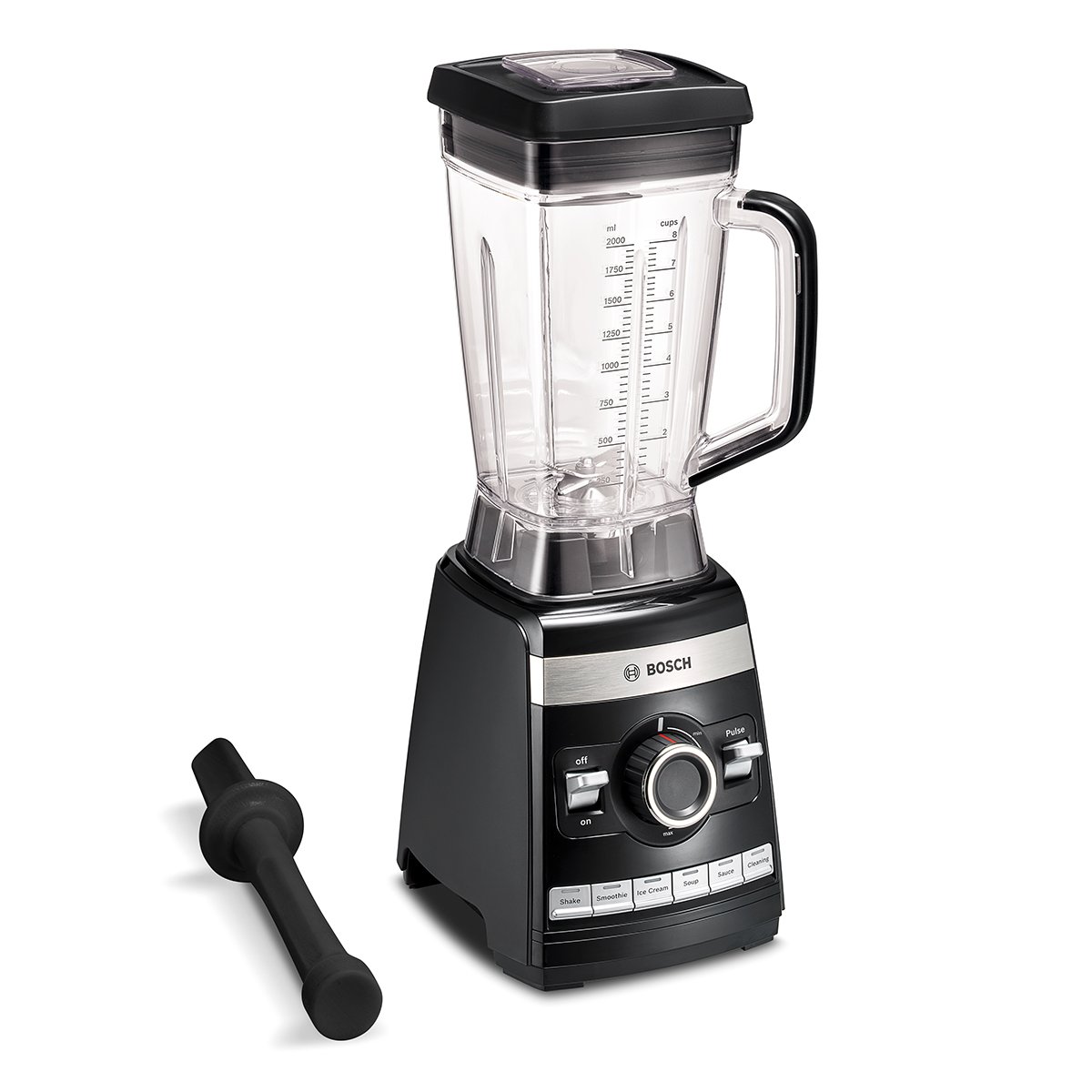 Robuster, BPA-freier 2 Liter Tritan-Mixbehälter – ideal für große Portionen. Inklusive Stopfer