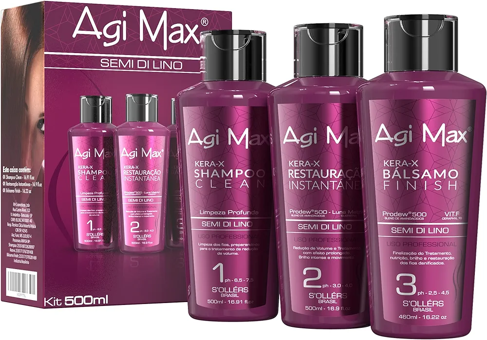 Brazilian Natural Keratin Hair Treatment Kit for Straightening Curls and Frizz, Reducing Dry Damage, Nourish and Hydrate Root to Tip, Support Color Treated Styles – 1 liter 3 Steps 3 x 500ml