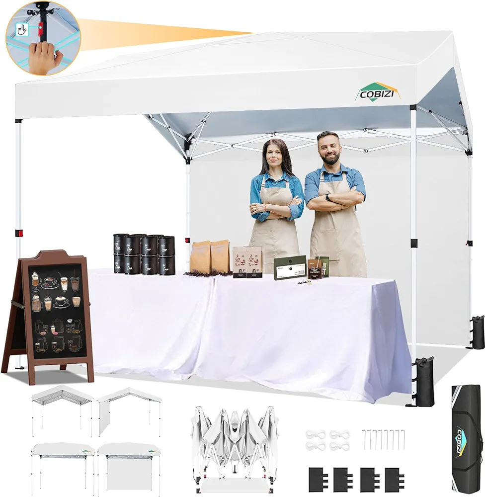 COBIZI Garden Gazebo 3 x 3 m Folding Barnum with 3 Walls Adjustable Height Outdoor Waterproof Professional UV Protection 50+ C with Handbag for Camping Festival Beach Gardens White