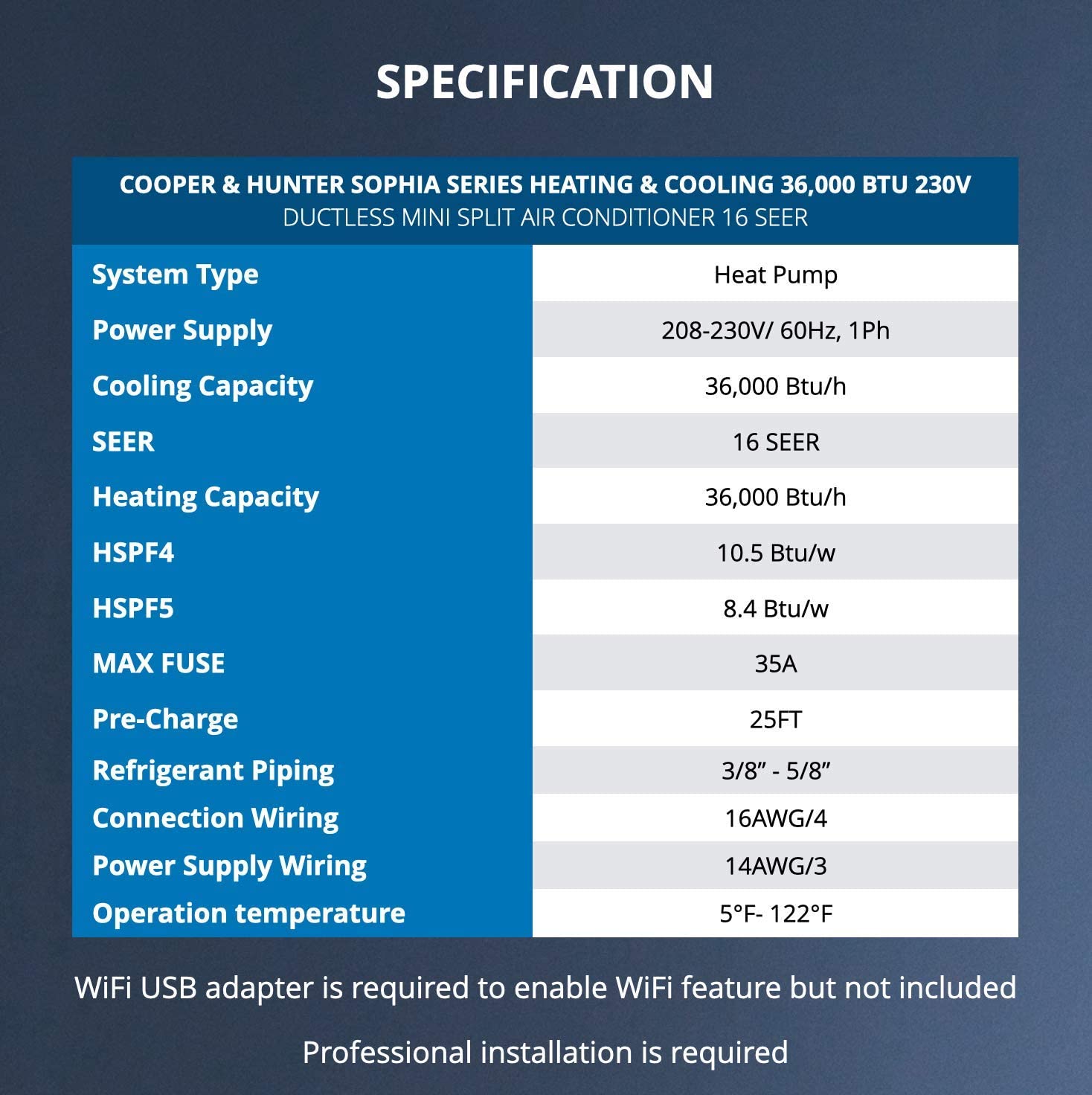 1 review for Cooper & Hunter 36,000 BTU Mini Split AC/Heating system Sophia Series 208/230V Heat Pump with 25ft Installation Kit