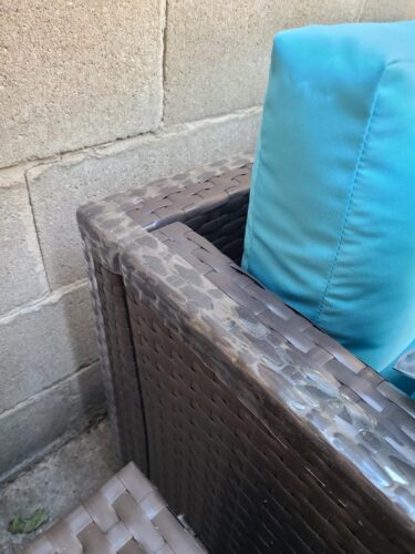 The furniture itself is sturdy but lightweight enough to move around. The woven plastic seems a bit delicate, like the corners and edges could be easily damaged. I placed some clear auto tape over the most vulnerable areas.
