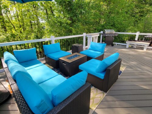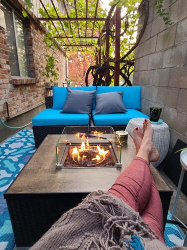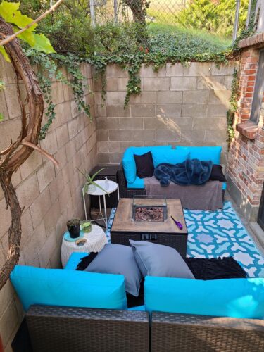 The firepit is gorgeous and works well. This set has brought me so much joy during the cooler months of the pandemic. It comes with 6 pieces. I only ended up using 4 in my small space, as pictured, but it would make a great sectional with all 6 pieces.