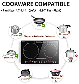 1 review for Double Induction Cooker,1800W Electric Burner Cooker, 6 Power/Temp Levels Countertop Burner with Kids Safety Lock, Tempered Glass Induction conduction cooktop, for Cast Iron, Stainless Steel Pan HA1911