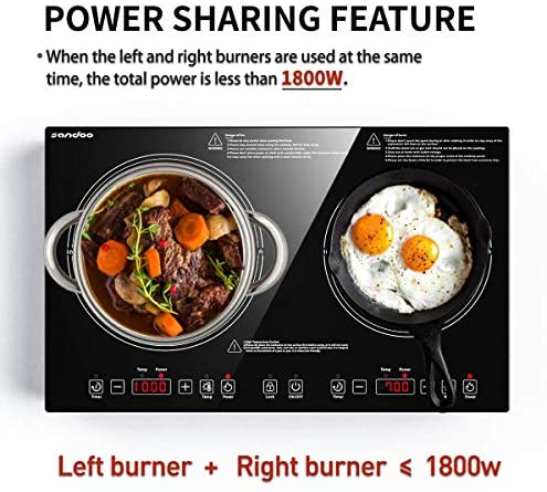 Double Induction Cooker,1800W Electric Burner Cooker, 6 Power/Temp Levels Countertop Burner with Kids Safety Lock, Tempered Glass Induction conduction cooktop, for Cast Iron, Stainless Steel Pan HA1911