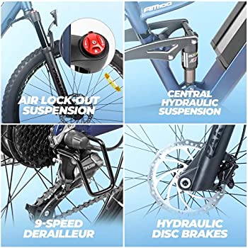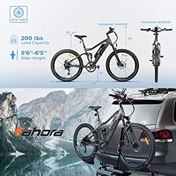 • γ€πŸ‘‰FULL AIR SUSPENSION ELECTRIC BIKEπŸ‘ˆγ€‘Eahora AM100 Plus mountain ebike equits with adjustable air suspension element, upgraded suspension fork with lockout and preload adjust. Adjustable preload to match weight and riding style, longer service life, better shock absorption, The highest saddle height to the ground is 1030mm and telescoping stem allow this electric bicycle to fit more riders. When you ride in the hills, give you the best off-road experience!