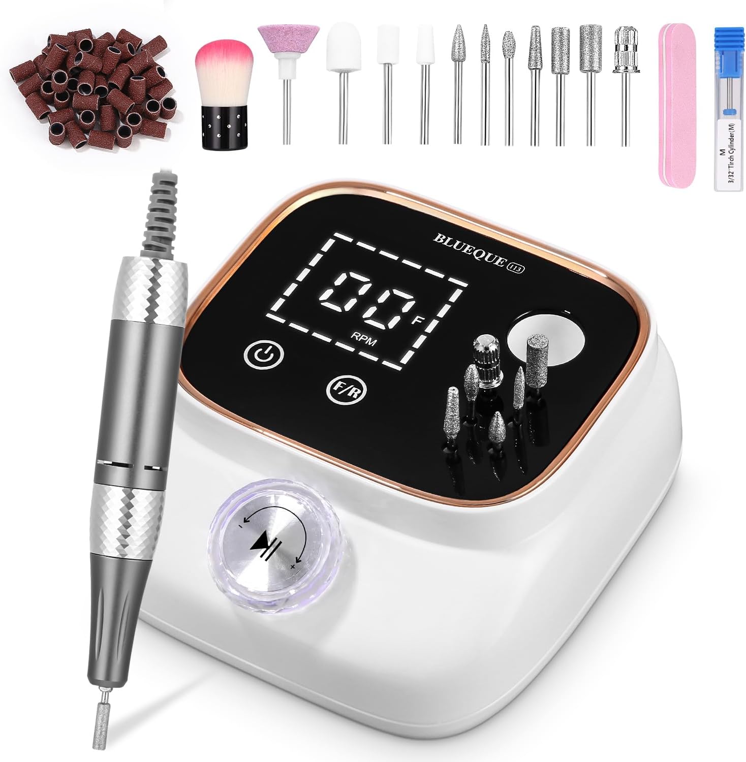 1 review for Exyvox Professional Nail Milling Cutter Nail Kit 45000RPM 8-10 Hours Cordless Use Nail Milling Cutter Touch Screen Electric Nail File Nail Salon White