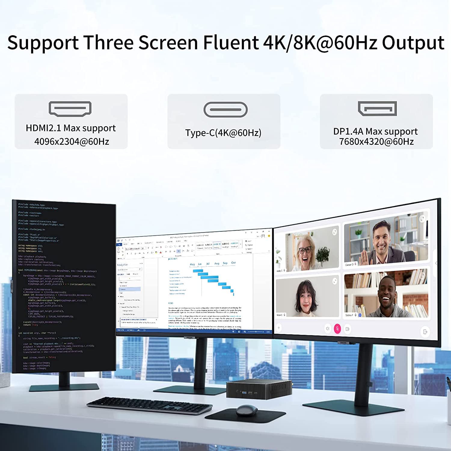 Kinupute Mini PC i9, Desktop Computer with Core i9-12900H 3.8-5.0GHz, Windows 11 Pro, 64G DDR4, 2T M.2 PCIE4.0 SSD, DP/HDMI/USB-C Port, 8K@60Hz, Dual LAN, 1×2.5G RJ45 LAN, WiFi6E/BT5.3, USB3.2, VESA