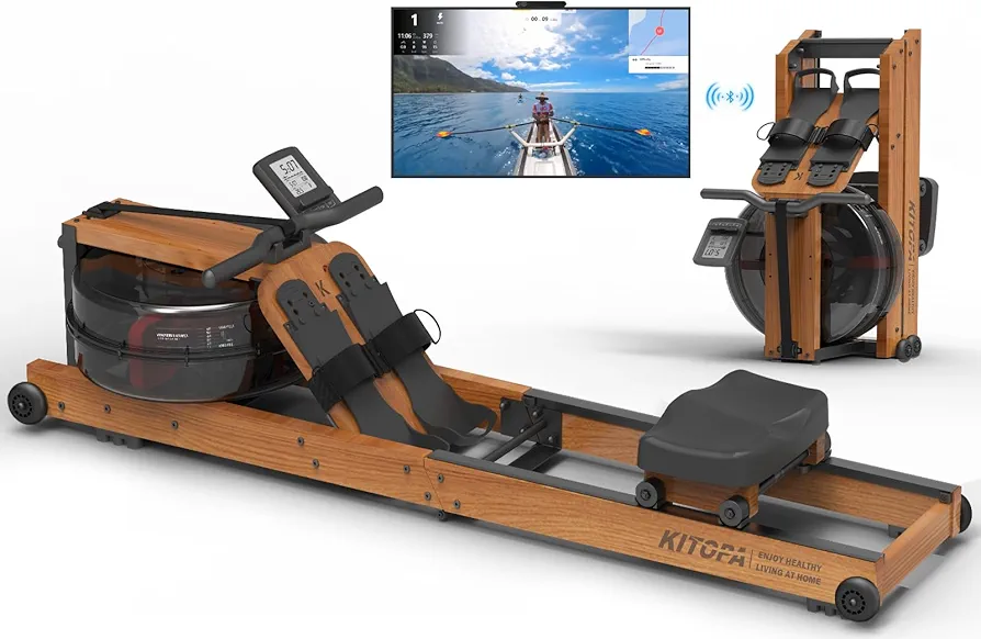 1 review for Kitopa Oak Wood Foldable Rowing Machine for Home Gym With Bluetooth Monitor, Adjustable Phone Holder, 441LB Weight Capacity, Compatible With Kinomap APP