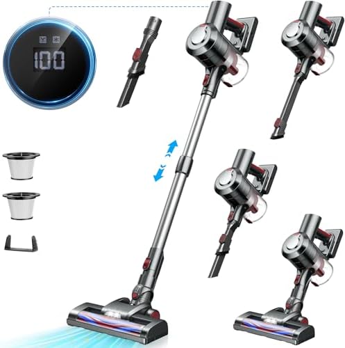 1 review for KLiHD Cordless Vacuum Cleaner 450W/38000Pa with LED Display, Up to 55 Minutes Runtime, Tangle Free Vacuum Cleaner for Pet Hair, Hard Floors, Carpet