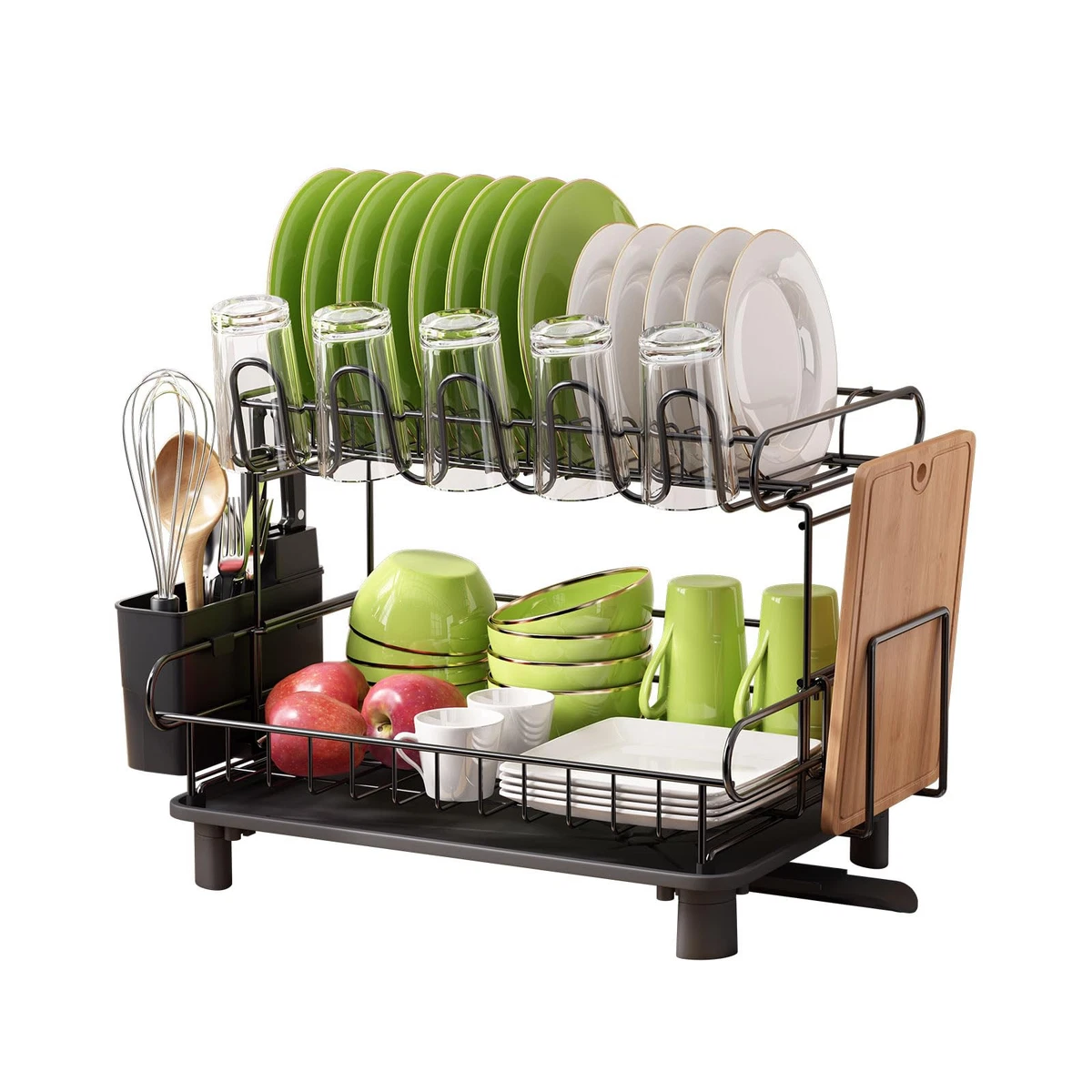 Large Dish Drying Rack for Kitchen Counter 2 Tier Stainless Steel Dish Draine
