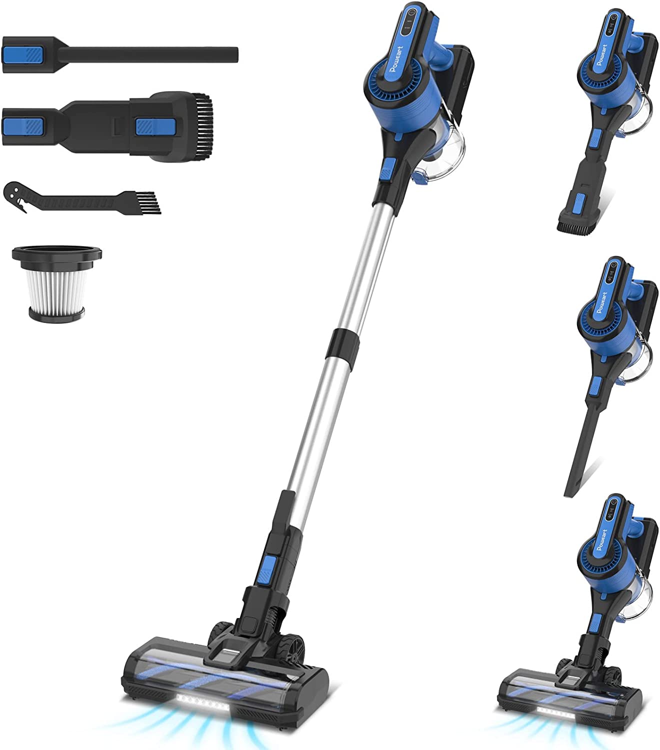 POWEART Cordless Vacuum Cleaner, Lightweight Cordless Stick Vacuum with 26Kpa 350W Powerful Suction, 6-in-1 Self-Standing Rechargeable Battery Vacuum Up to 45mins Runtime for Hardfloor Carpet Pet Hair