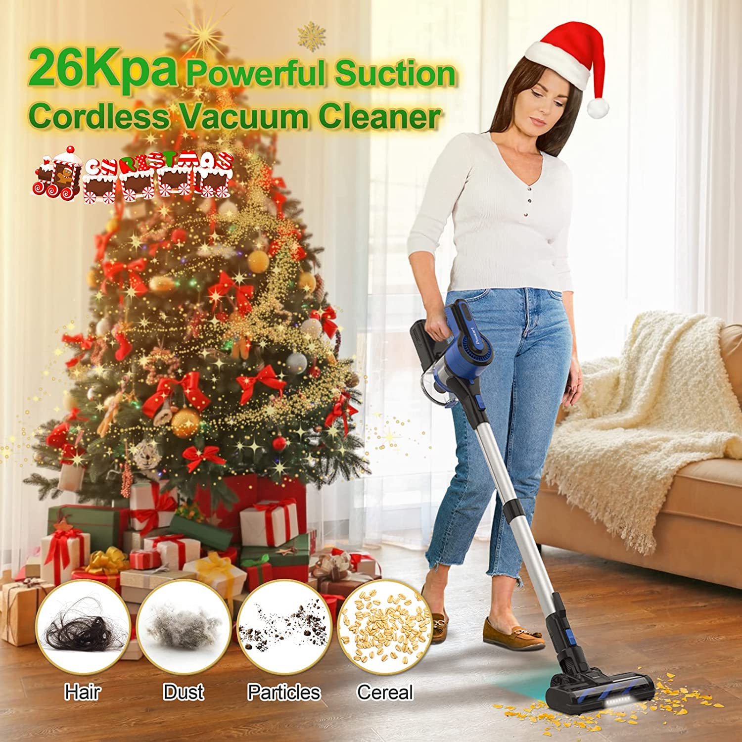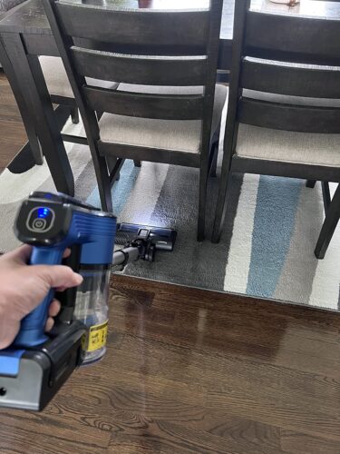 γFlexible LED Motorized Floor HeadγBattery stick vacuums feature LED motorized floor heads with beater rollers. There are both soft and stiff bristles on the roller, which can spin quickly to sweep up dirt from a variety of floors without scratching them. LED lights at the front help track dirt in dark and difficult-to-reach places. Cleaning underneath furniture like beds, tables, etc. becomes much easier when the floor vacuum head can be rotated 90Β° vertically and 150Β° horizontally. Due to the smooth rubber wheels on the bottom of a vacuum cleaner, the motorized brush head moves freely over hardwood floors, tile, marble floors, and low-pile carpets without leaving any marks.