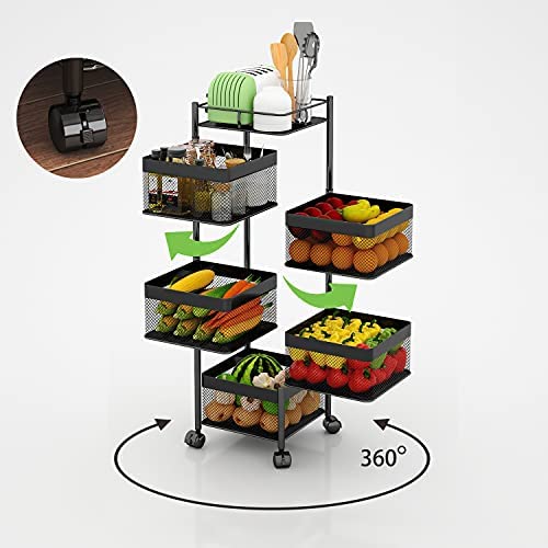 1. Rotating Multi-Layer Kitchen Storage Shelf,Xinyourui Fruit Vegetable Storage Basket,Floor-Standing Rolling Vertical Shelving,Multifunctional Household Shelf for Bedroom,Bathroom, Black, 5 Tier-Square-new photo review