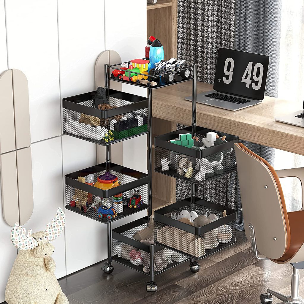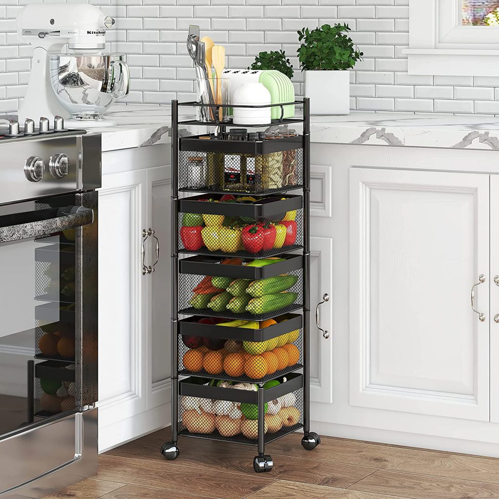 3 reviews for Rotating Multi-Layer Kitchen Storage Shelf,Xinyourui Fruit Vegetable Storage Basket,Floor-Standing Rolling Vertical Shelving,Multifunctional Household Shelf for Bedroom,Bathroom, Black, 5 Tier-Square-new