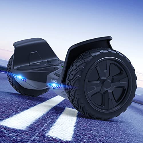 • 【Adult hoverboard offroad Tires for All Terrain Fun】8.5″ solid tires easily climb inclines of up to 20°, so you can overcome those pesky campus hills or never-ending uphill sidewalks, while the IPX4 waterproof design of the all terrain hover boards electric allow you to conquer wet streets.