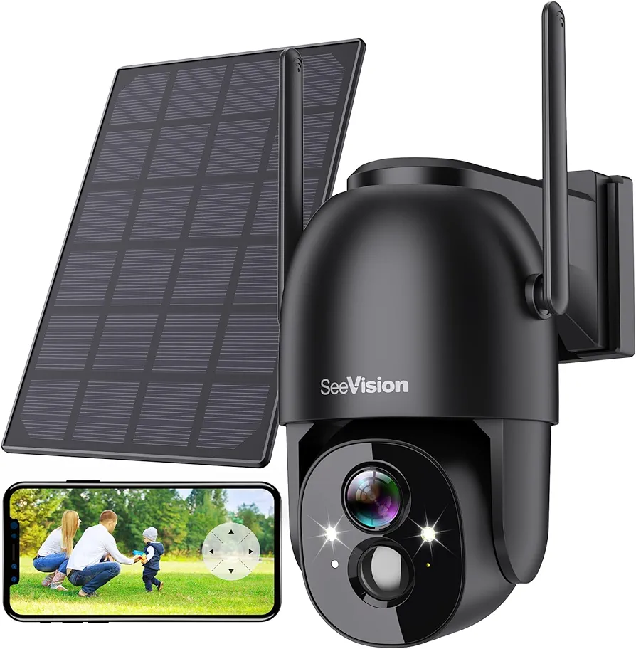 Solar Security Cameras Wireless Outdoor, SeeVision 2K Battery Powered PTZ WiFi 3MP Camera for Home with Spotlight, PIR Motion Detection,Siren, Color Night Vision, 2-Way Talk, SD/Cloud Storage
