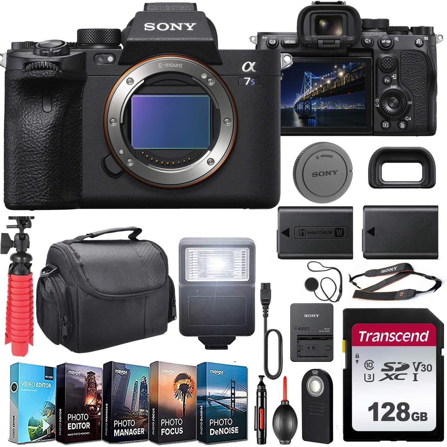 Sony Alpha a7S III Mirrorless Digital Camera (ILCE7SM3/B) Body Kit with Extra Battery + Flash + 128GB U3 V30 Memory Accessory Bundle