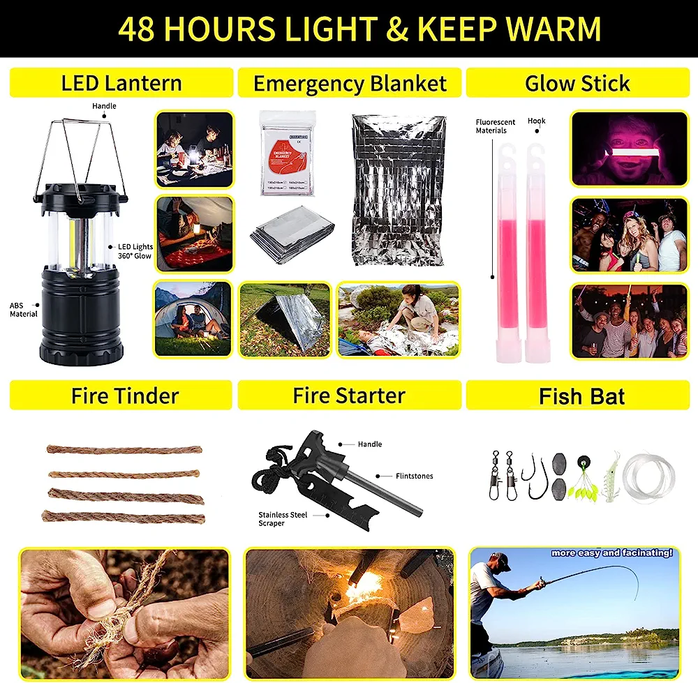 - γMust Have High Quality Survival KitγAll the survival gear are made of high-quality material, providing excellent safety and durability, meeting emergency and medical needs, making your camping, wilderness survival or hiking trips easier and more convenient. This survival kit is great for tactical doctors, first aid personnel, police, campers, hikers, outdoor sports enthusiasts, etc. It is ideal for car, bicycles, ship. Also suit for natural disasters , such as earthquakes, hurricanes.