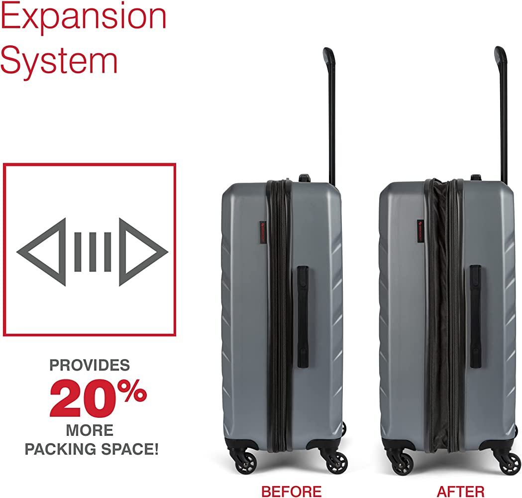CONVENIENT DESIGN: Each hard sided bag features a zipper-release expansion system that provides 20% more packing space; A dividing panel, practical mesh pockets and tightening straps organize and secure your personal items; The cases nest for easy storage