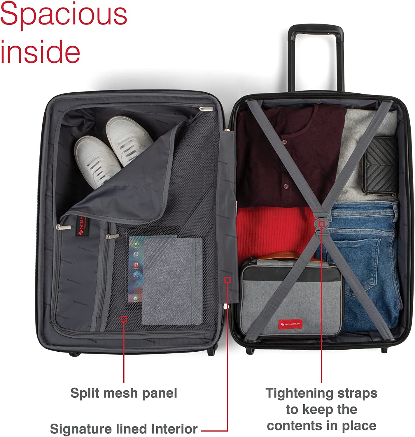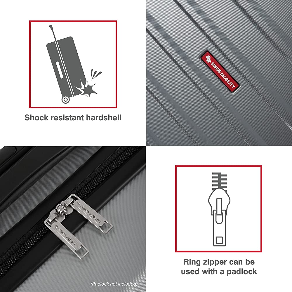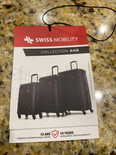 SWISS MOBILITY AHB Collection 3 Piece Hard Shell Luggage Set, Expandable Suitcases with 360-Degree Spinner Wheels, Retractable Handle, 20 Inch Carry On, 24 Inch Mid-size, 28 Inch Large Bags, Black