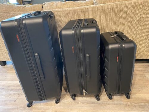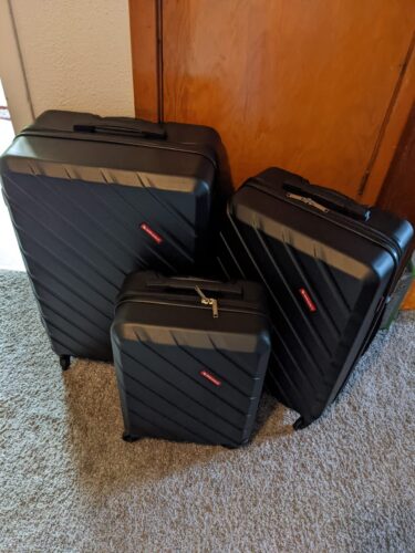 I especially like how the larger two can expand more by unzipping another zipper, and the largest one has extra feet and an extra handle to accommodate setting it down lengthwise too. The zippers can lock together at their base.