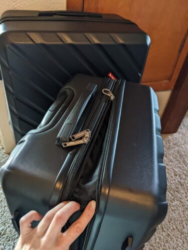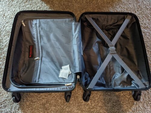 - Wish the interior had both sides able to be enclosed with a zippered closure. The criss cross straps do hold some things in, but when the suitcase is opened the wrong way things tend to fall out of that side.