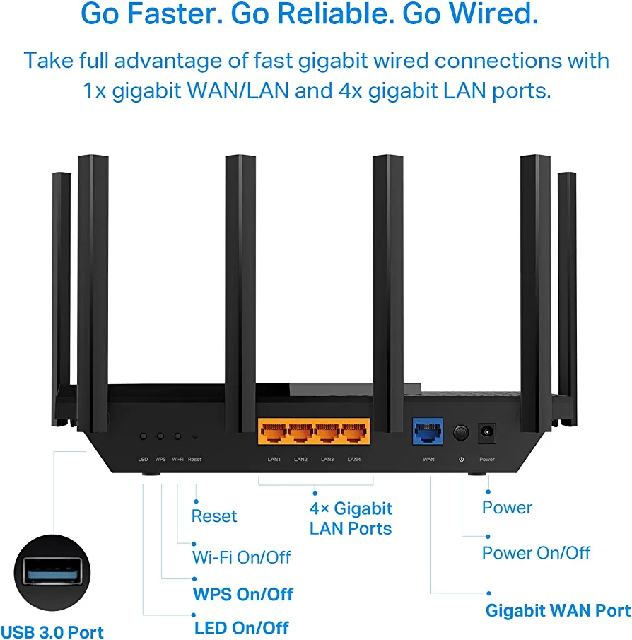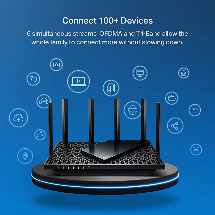 Super-Fast Tri-Band WiFi 6 Router – Up to 5400 Mbps WiFi for faster browsing, streaming, gaming and downloading, all at the same time(5 GHz: 2402 Mbps;5 GHz: 2402 Mbps;2.4 GHz: 574 Mbps)ΒΉ
