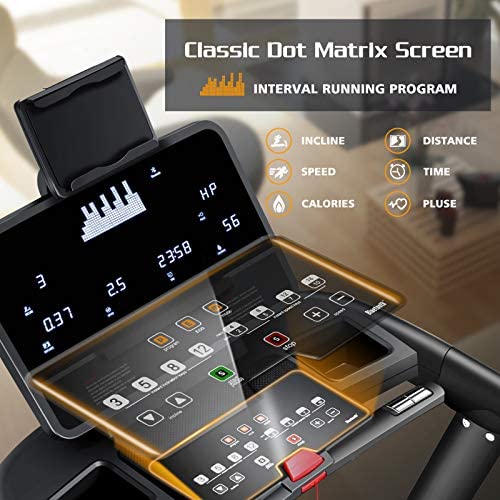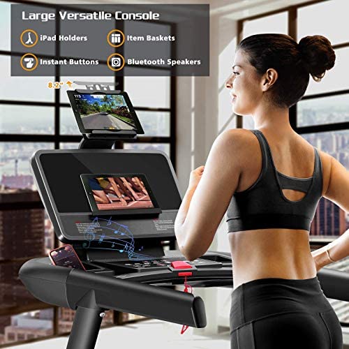 • 【Convenient Versatile Console】23” dot matrix screen with quick buttons combine two tablet holders, two item baskets, and two Bluetooth speakers providing you a comfortable running in the home. Make running more enjoyable.