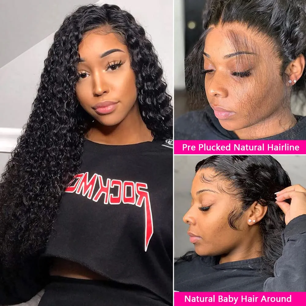 7 reviews for Water Wave Lace Front Wigs Human Hair Brazilian 180% Density Virgin Hair 4X4 Deep Curly Lace Closure Wigs for Black Women Pre Plucked with Baby Hair Natural Color (26 Inch,Water Lace Closure Wigs)