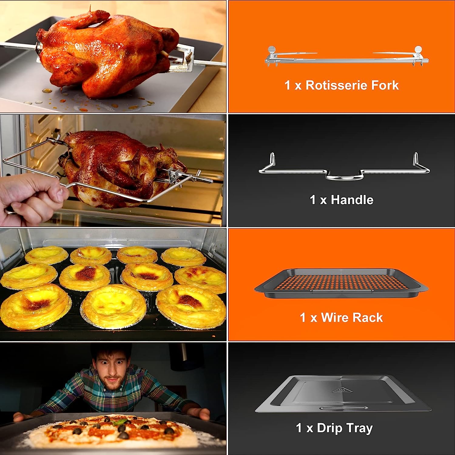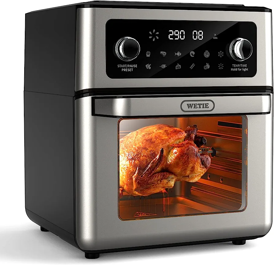 WETIE FO12B Air Fryer, 13 QT Air Fryer Oven, 1700W Toaster Oven Air Fryer Combo, Digital Screen & Visible Window, 11-in-1 Presets for Roast, Frier, Bake, Reheat and Dehydrate, Rotisserie Oven