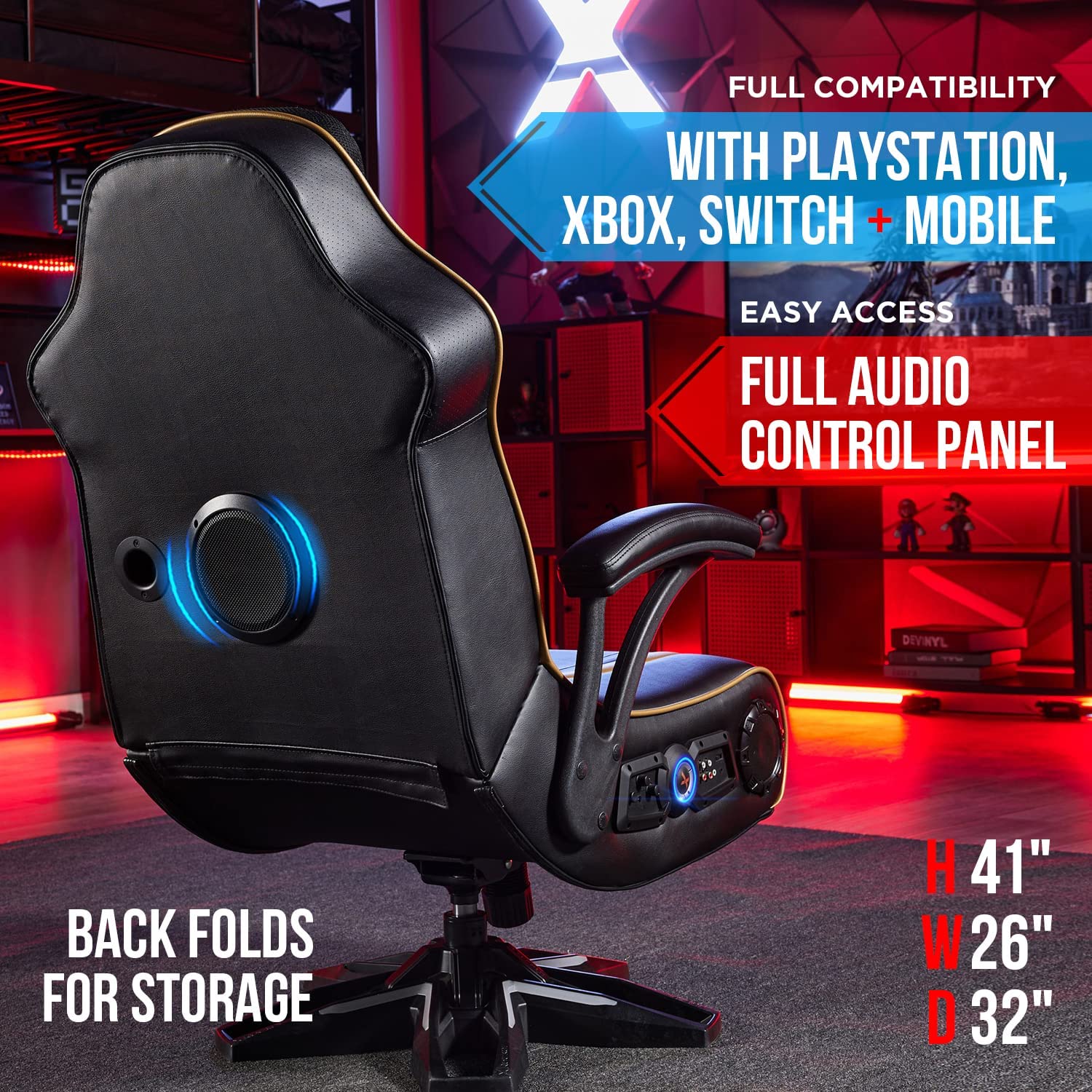 X Rocker 5152301 Trident Pedestal 4.1 Wireless, 31.89″ x 25.98″ x 40.55″, Black/Gold
