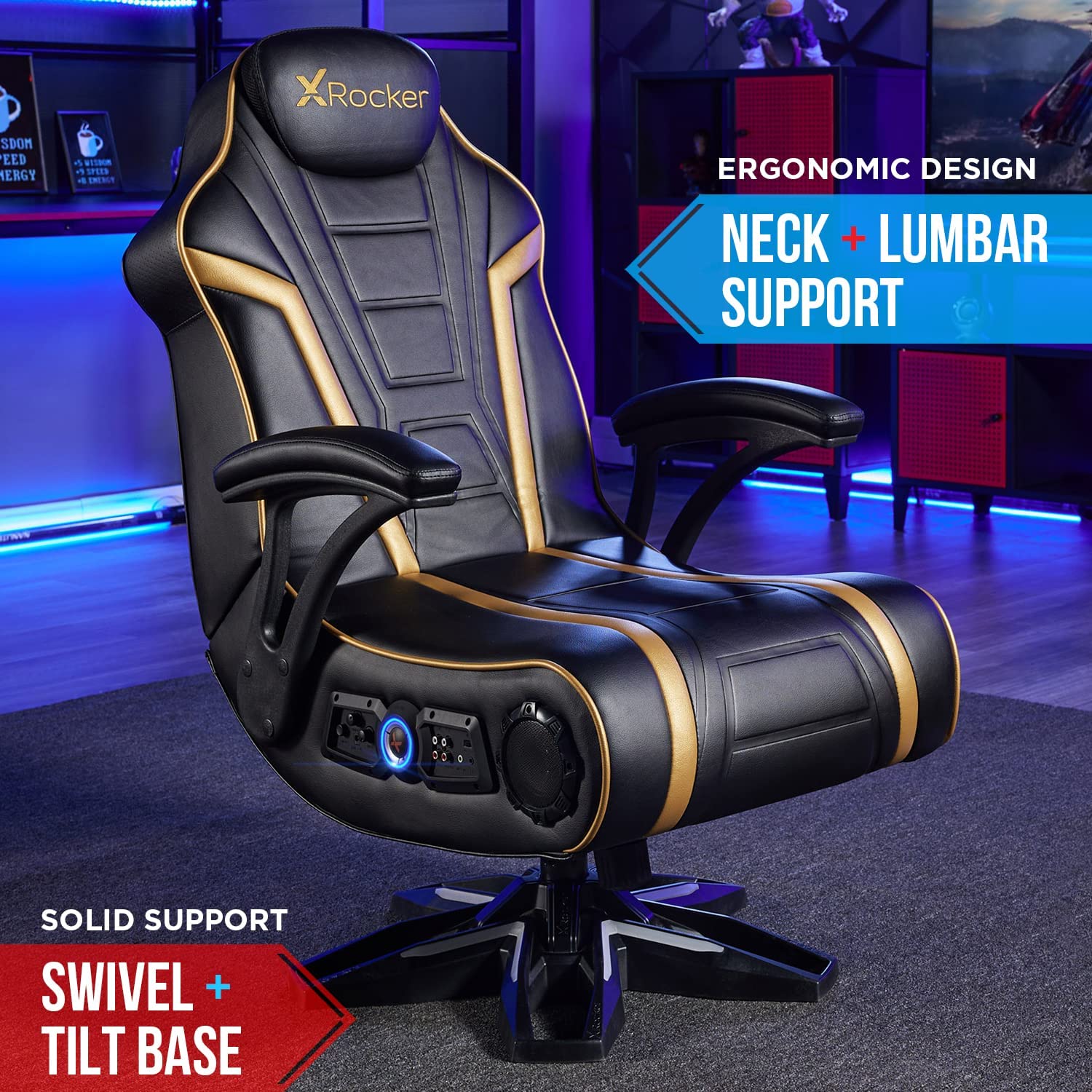 10 reviews for X Rocker 5152301 Trident Pedestal 4.1 Wireless, 31.89″ x 25.98″ x 40.55″, Black/Gold
