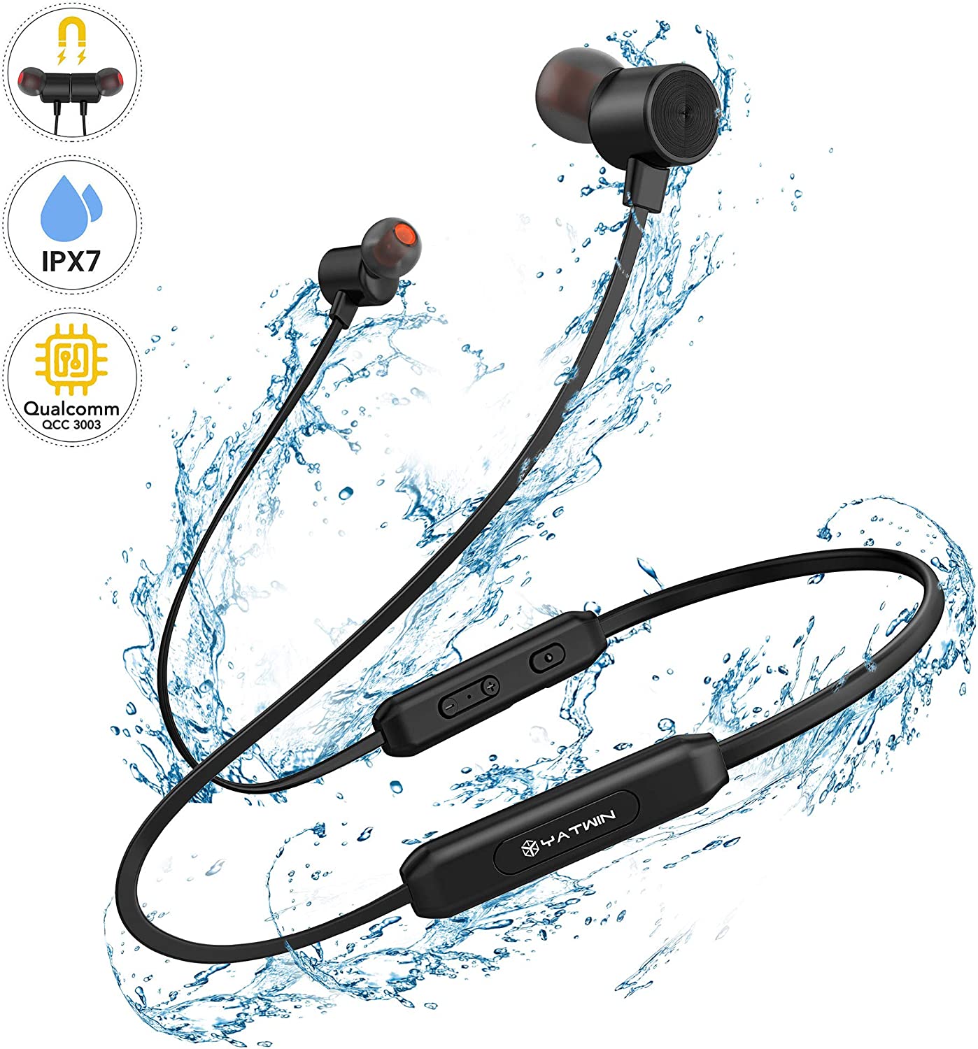 Yatwin Bluetooth In-Ear Headphones – Wireless Magnetic and Neckband Sports Headphones black